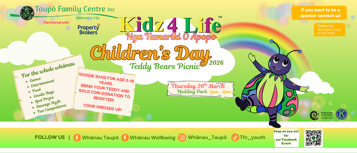 This year's theme is "Kidz 4 Life" celebrating the magic of childhood, creativity, and the joy of being a kid. We're proud to partner with Property Brokers Taupō to bring this special day together for our community in celebration of our tamariki.